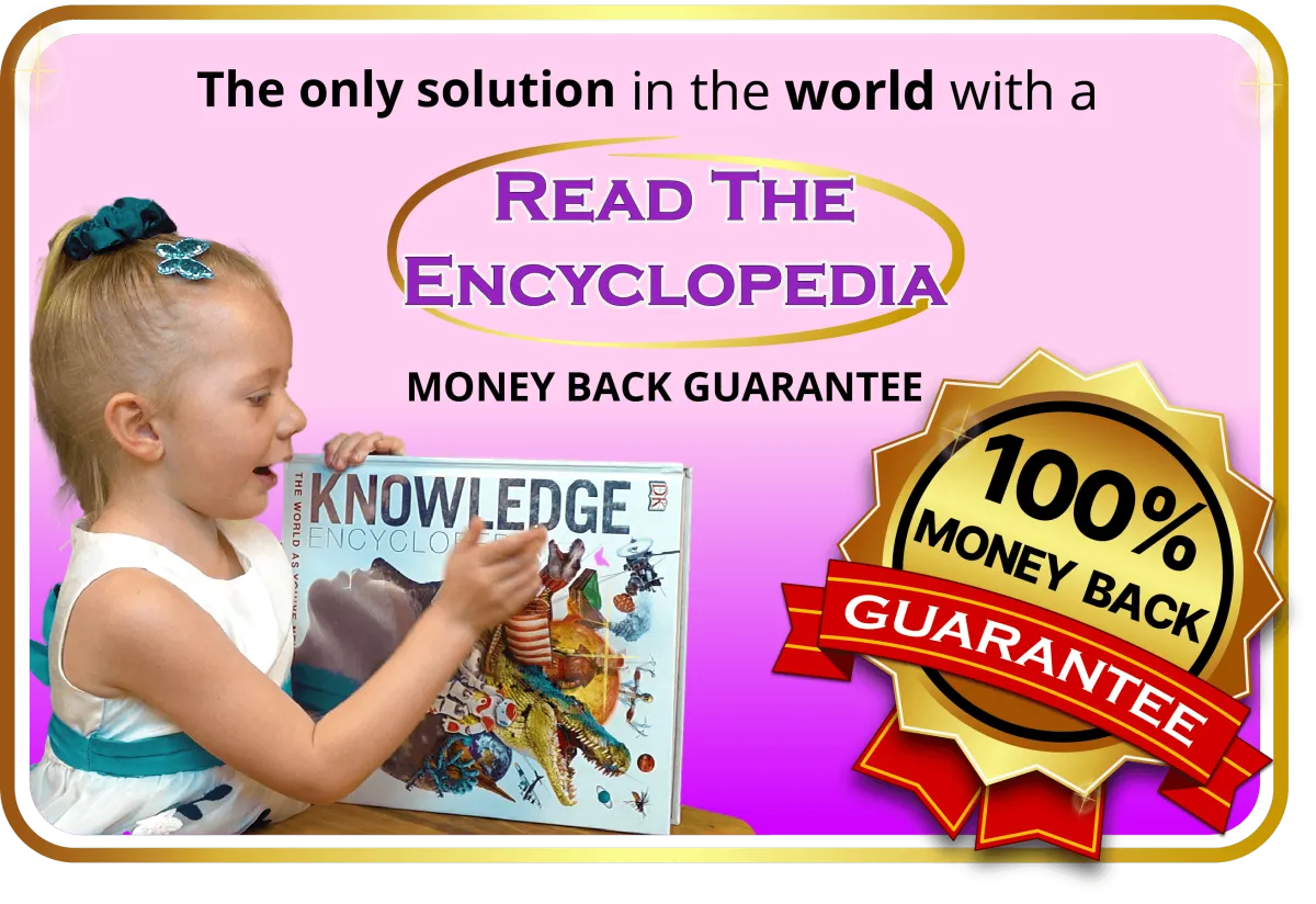 We take your child from Never Seen Letters Before → → all the way to → → Encyclopedia Reading.
